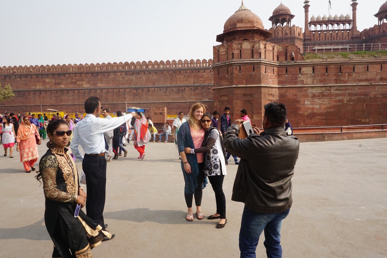 We sat on our bed at the end of the day on the laptop and reading our Lonely Planet Guide book trying to figure out what we can squeeze into tomorrow. Suddenly we realized there was so much to do and we don’t have enough time. We decided to explore The Red Fort and the spice market, and walk around Old Delhi. We took the metro line to Old Delhi in the morning and walked to the Fort, meeting some friendly folks along the way who were from Germany, South Africa, and the States but were all living in Delhi.
