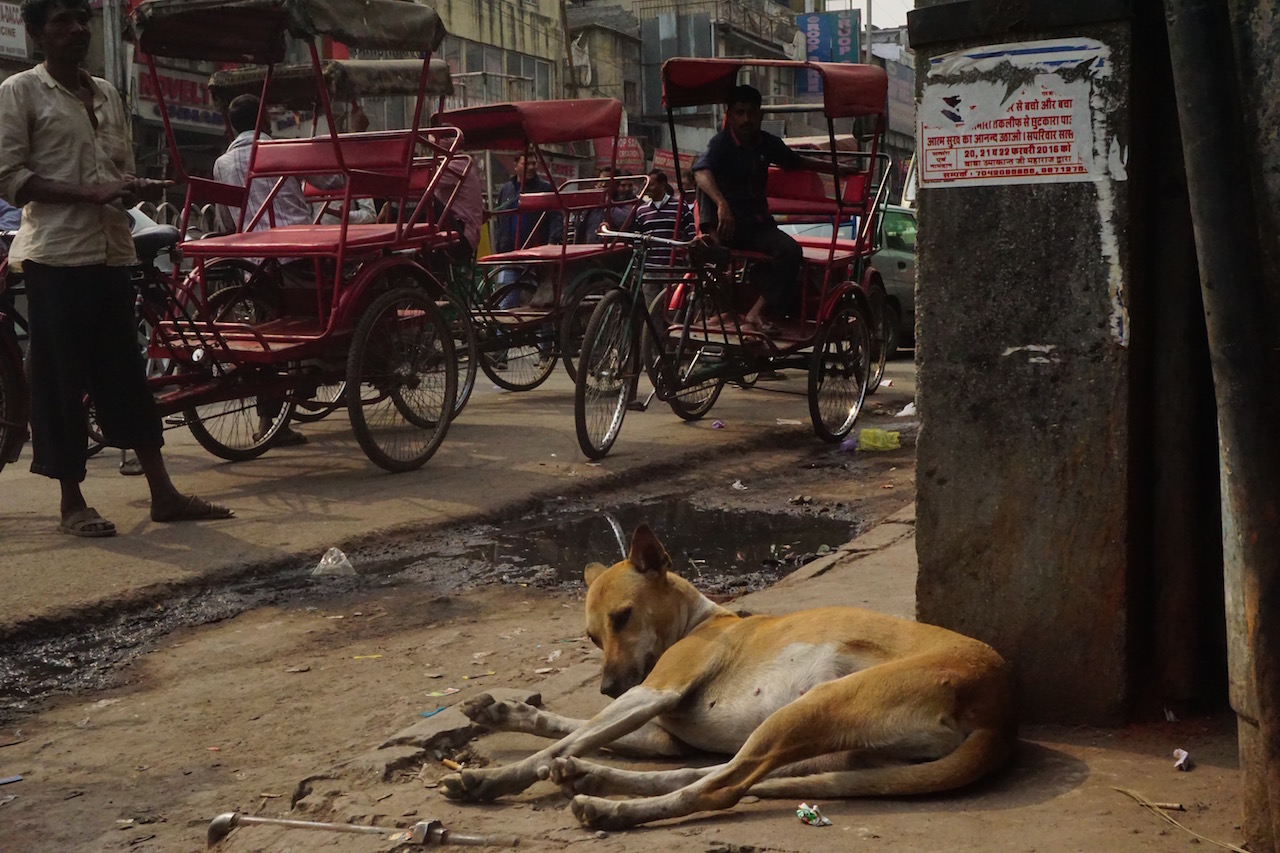 By 8:30am, we were standing out front of the New Delhi railway station. We just got off the express line from the airport, feeling quite accomplished for having navigated this portion with ease. All that was left was following the hand written walking directions we had jotted down from the Smyle Inn website. A quick 10 minute walk would get us to this hostel located in the Main Baazar, a ghetto backpacker neighbourhood full of super cheap accommodations.